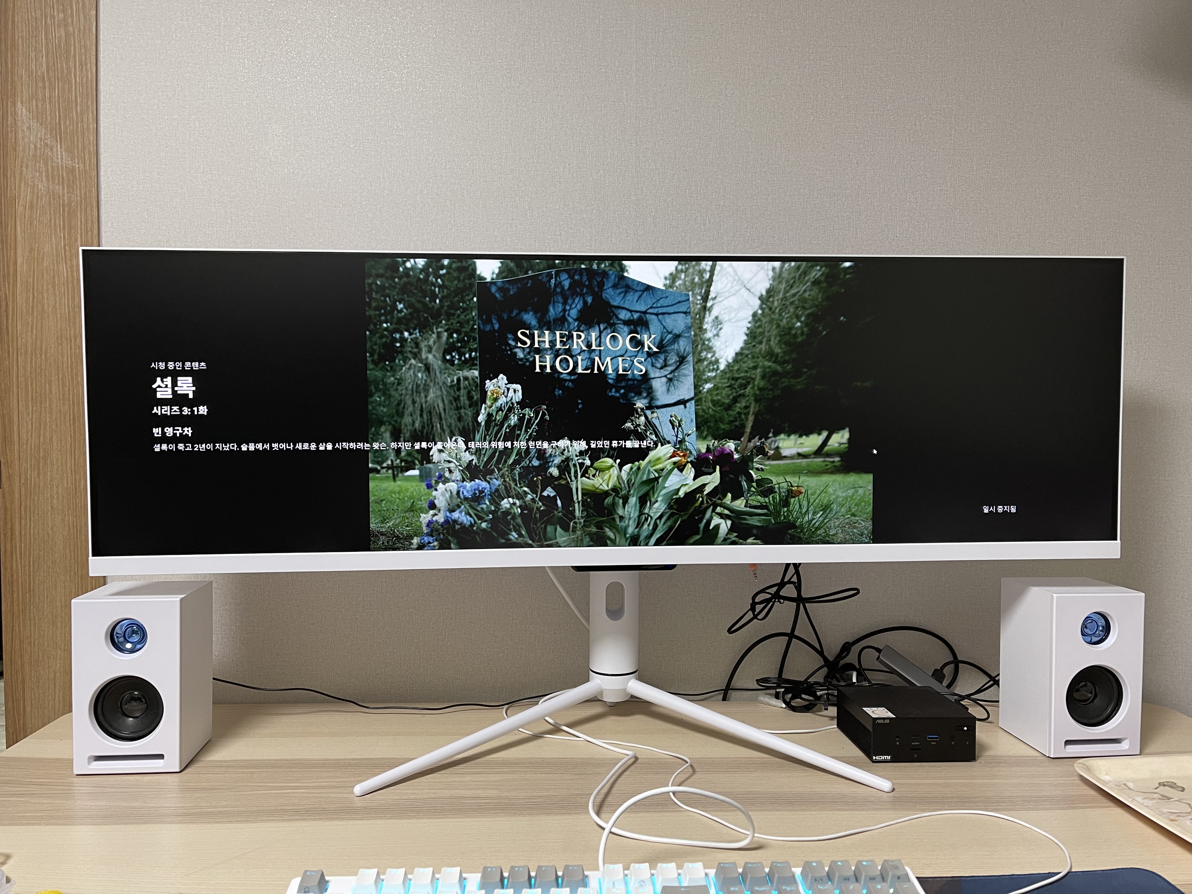 참고로 슈퍼울트라와이드급 모니터에서 영화감상을 하려는 생각은 버려야한다. 좌우 여백이 상당히 많이 남는 것을 볼 수 있다. 영화 감상을 할 때는 30인치 모니터만도 못하기 때문에 영화감상을 하기 위해 슈퍼울트라와이드 모니터를 구매하는 것은 극구 말리고 싶다.