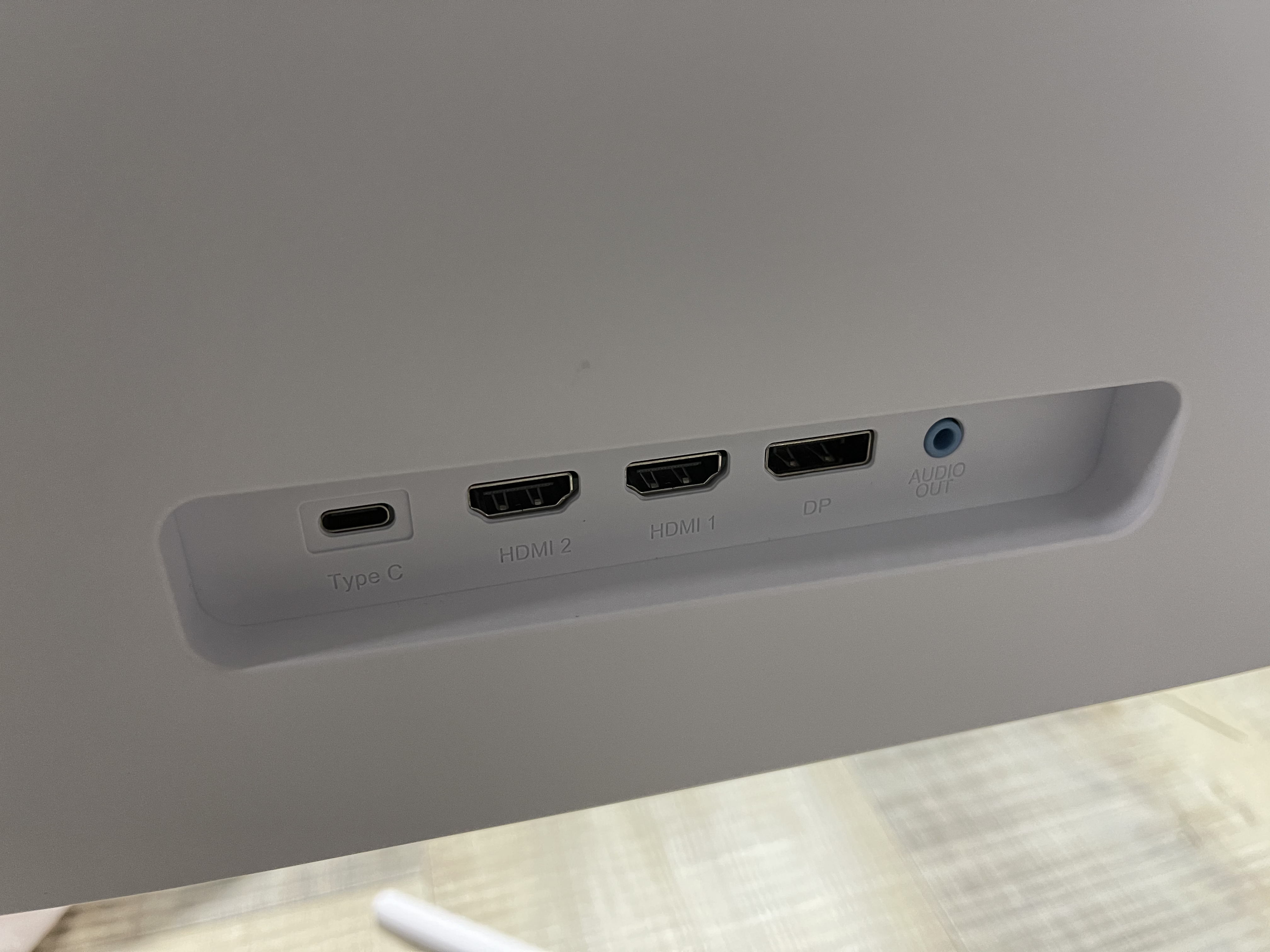 모니터에 지원되는 포트이다 Type C, HDMI 2, HDMI 1, DP, AUDIO OUT가 있는 것을 볼 수 있다.