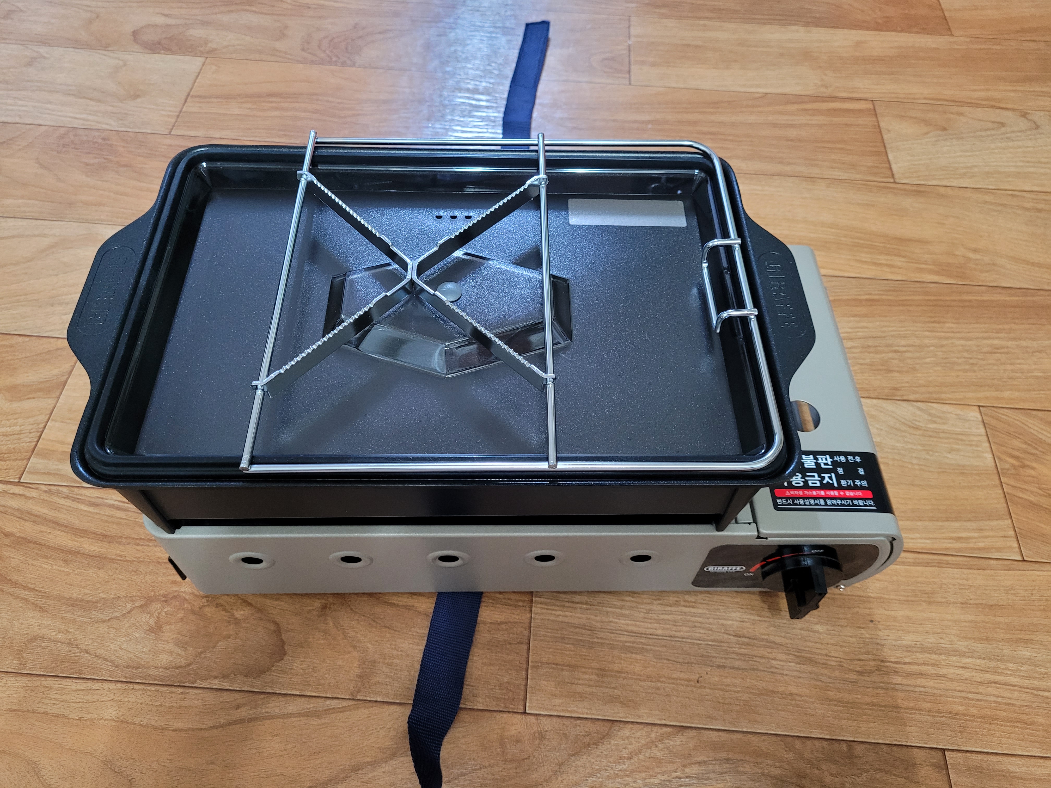 제품의 총 구성은 위와 같다. 본체와 전골팬, 구이팬, 버너받침대를 제공한다.