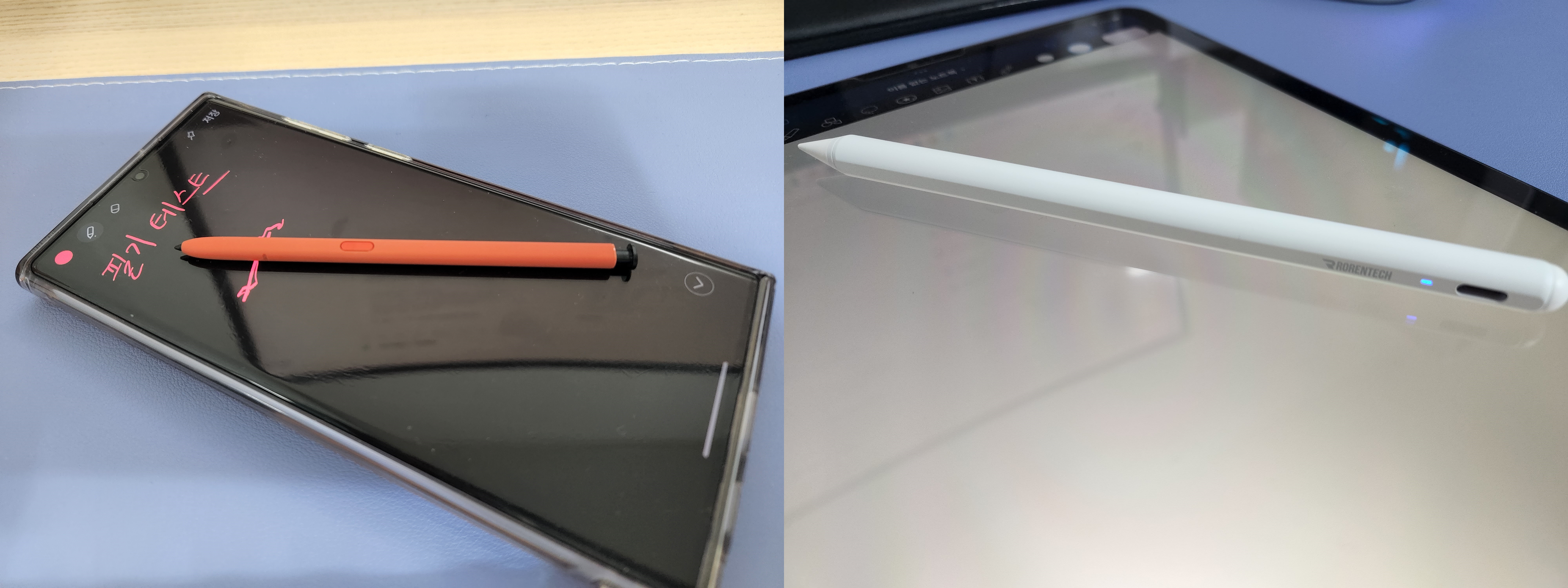 나의 경우 갤럭시S22 울트라 모델을 가지고 있는데 갤럭시S22 울트라 모델의 필기감과 비교하자면 갤럭시 S22 울트라 모델의 필기감이 훨씬 좋다. 정품 애플펜슬의 필기감도 아마 로랜텍의 RRT-412 제품과 똑같을 거라 생각되는데 뭐랄까 유리에 볼펜으로 필기를 한다는 느낌이 강하다. 필기감이 너무 딱딱하다. 왜 이런 펜촉을 쓰는건지 잘 모르겠다.