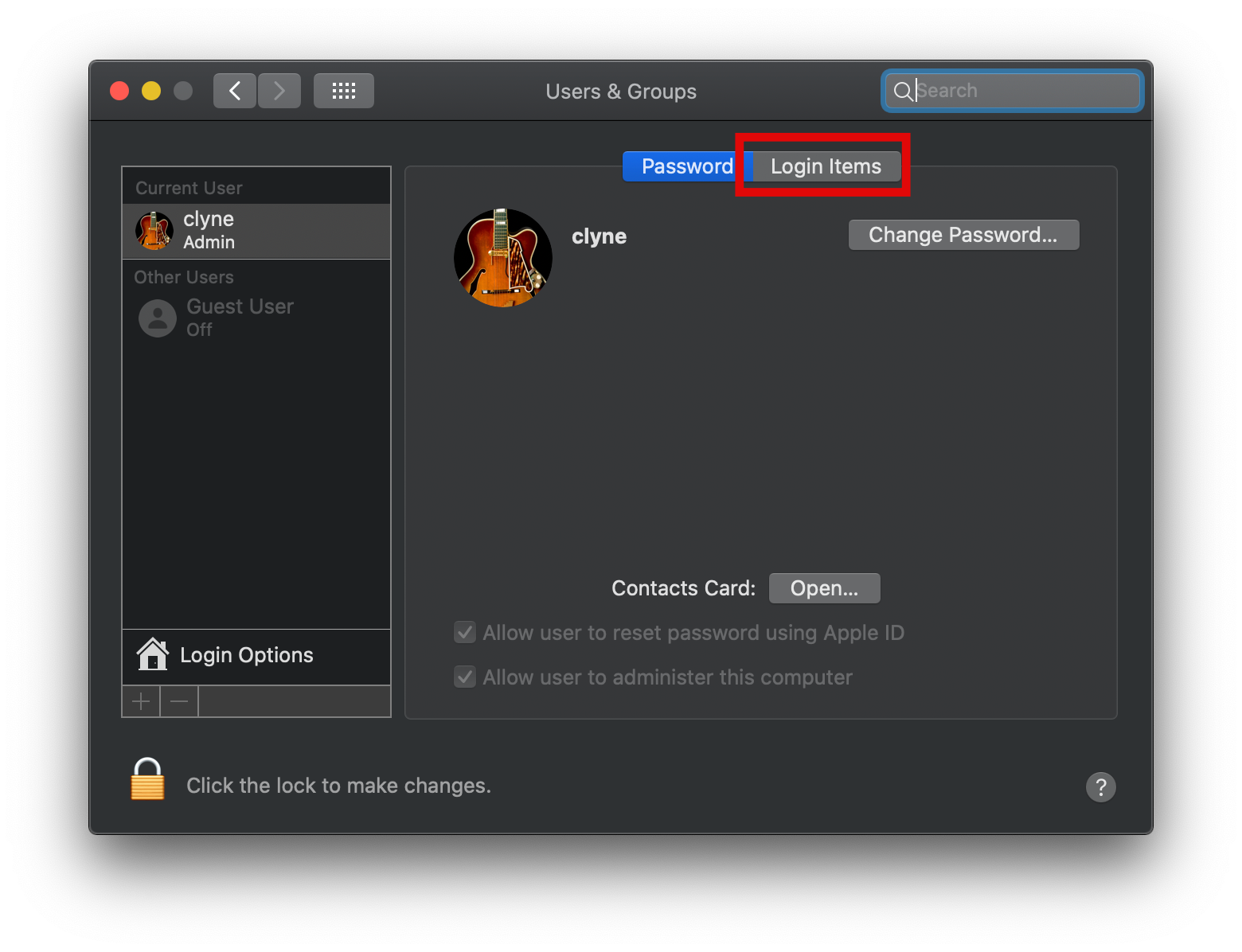 그러면 Users & Groups 창이 나타나는데 저 화면에서 Login Items를 클릭해주자