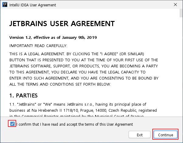I confirm that I have read and accept the terms of this User Agreement를 체크하고