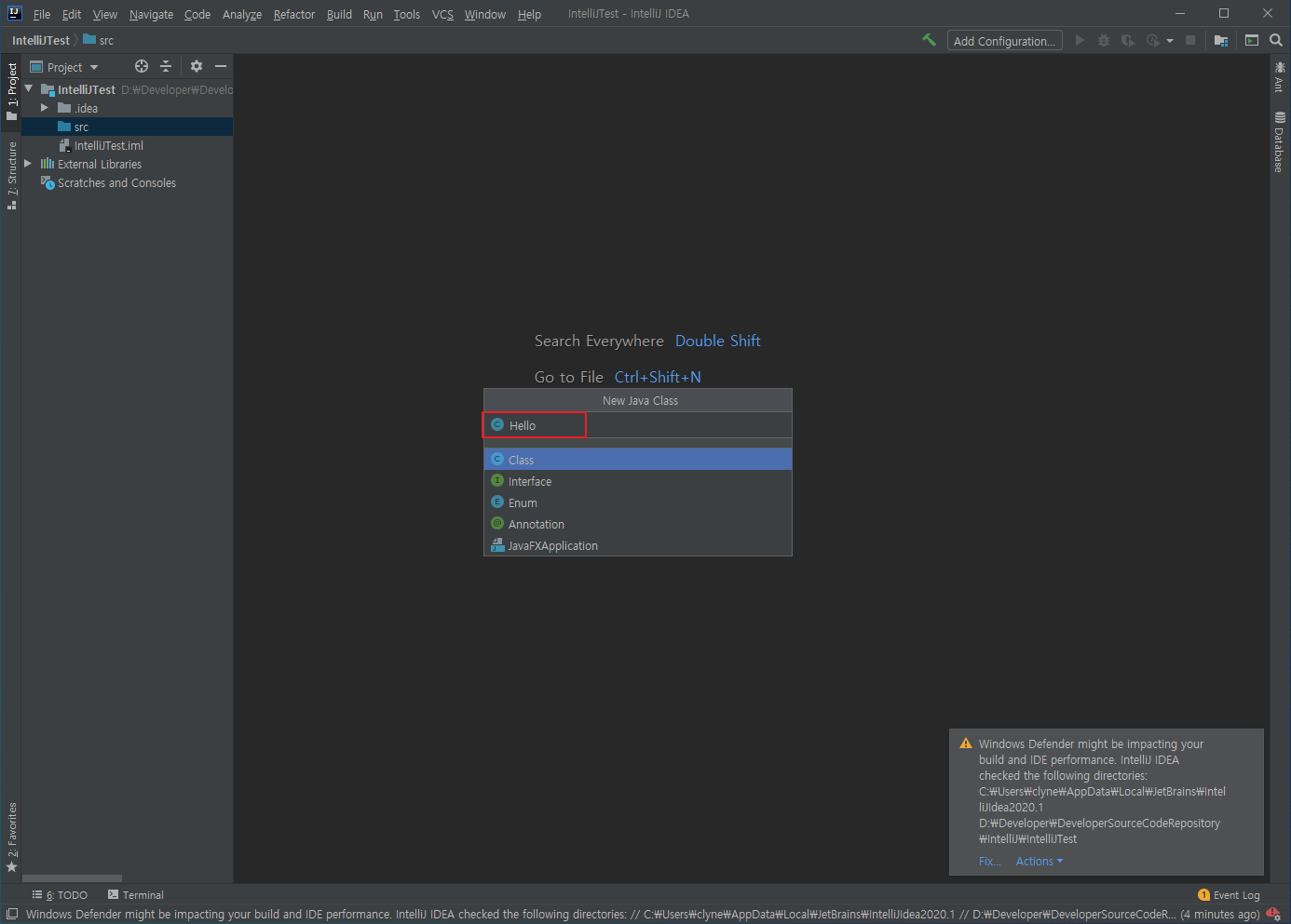 나의 경우 InteliJTest로 설정했다.