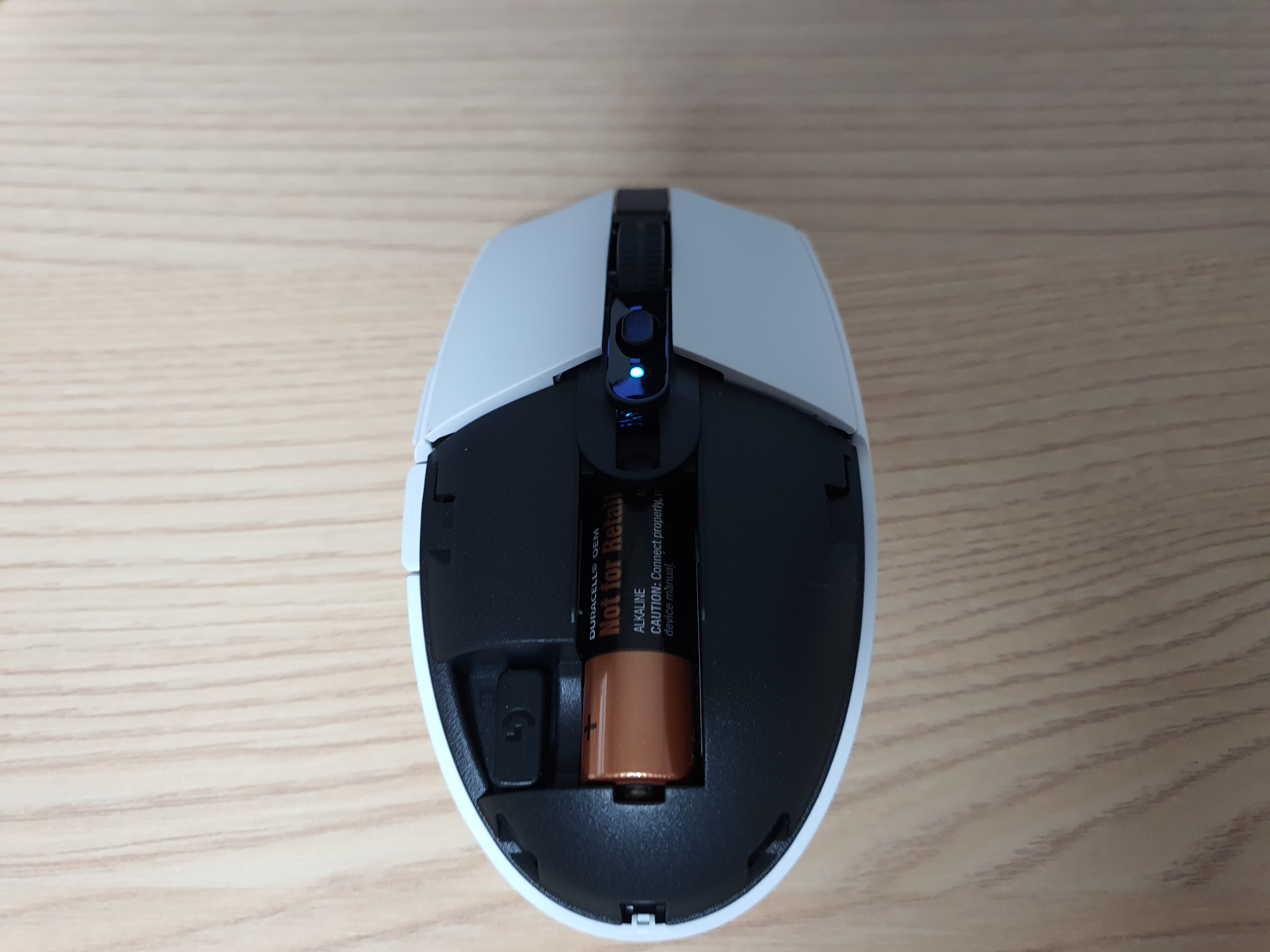 건전지를 넣는 부분은 마우스 윗 부분에 뚜껑이 있다.
