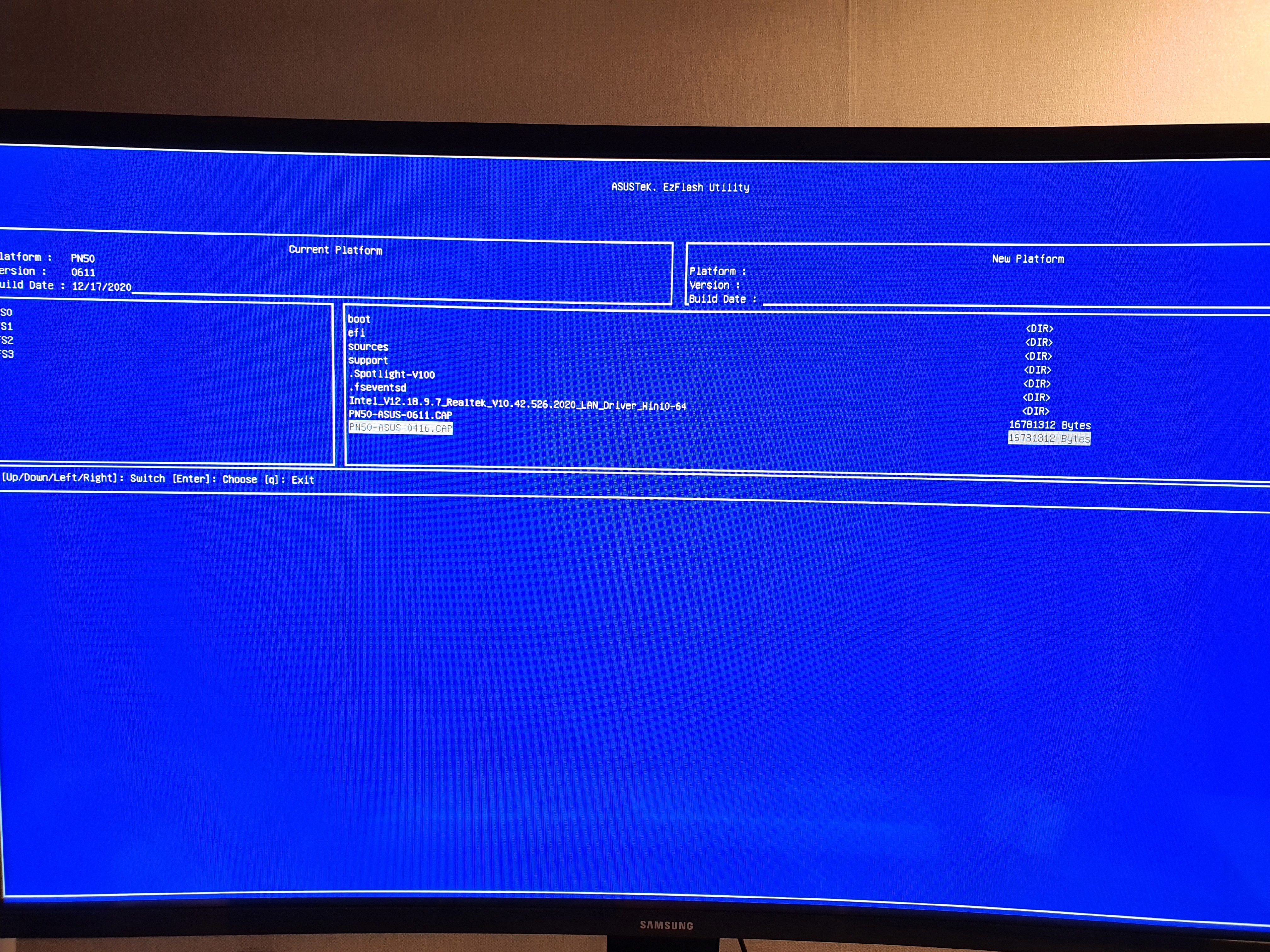 그러면 본인이 USB에 다운로드한 BIOS 파일 버전이 나오는데